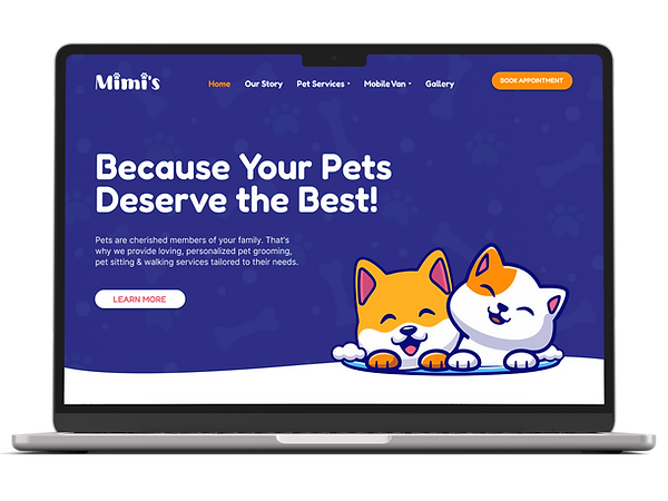Mimi’s Pet Grooming and Care is a Washington, DC based pet service provider that lacked an approachable, fun, clear, and trustworthy digital presence for pet owners seeking reliable grooming, boarding, and mobile services. The design solution uses a friendly visual system featuring illustrated mascots, bright colours, and structured layouts to communicate warmth, professionalism, and ease of navigation. The style builds emotional connection and clarity and the audience includes local pet owners, with the website serving as the primary platform for browsing services, booking appointments, and learning about care offerings.